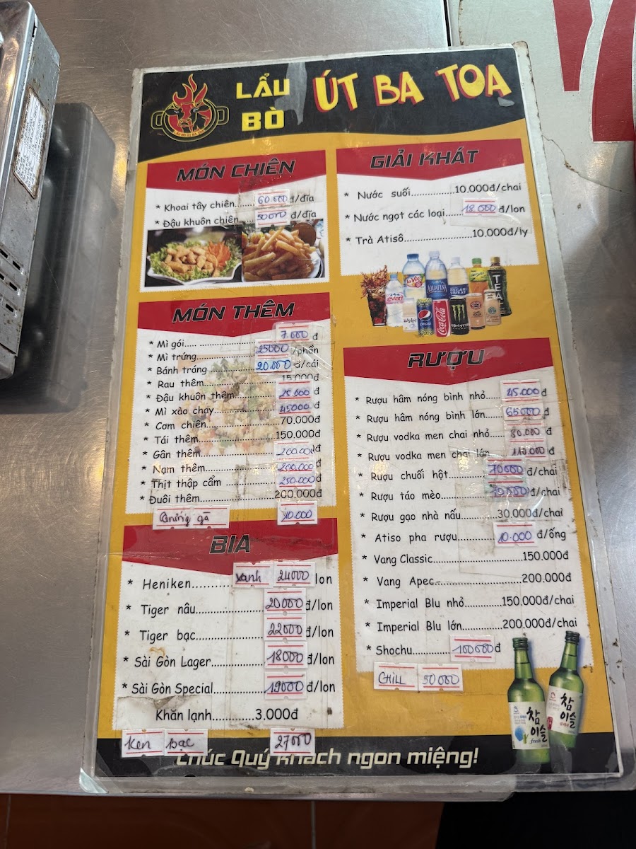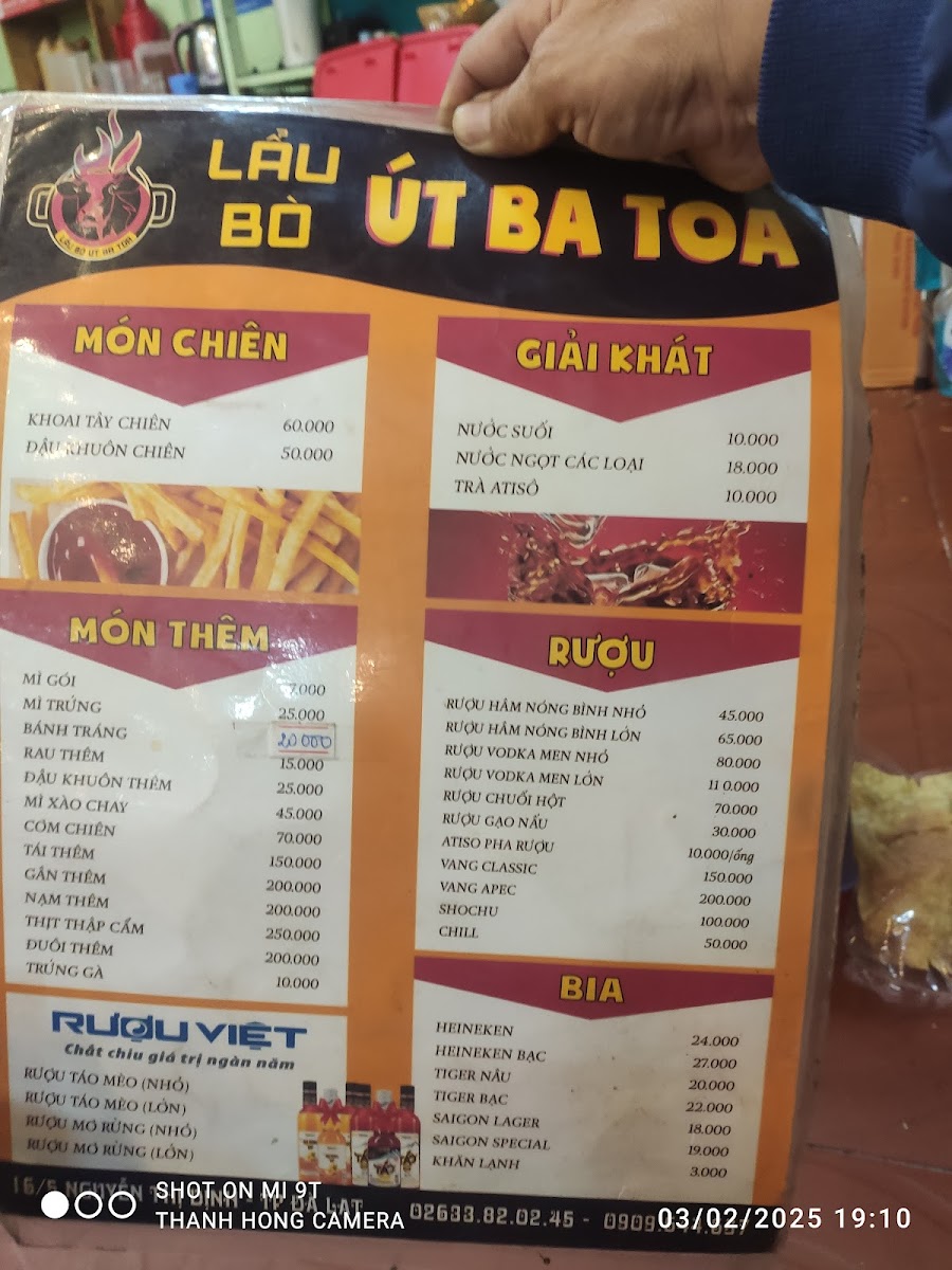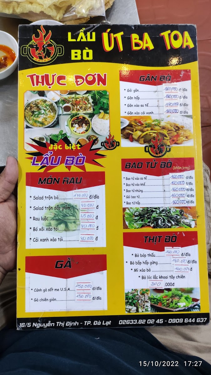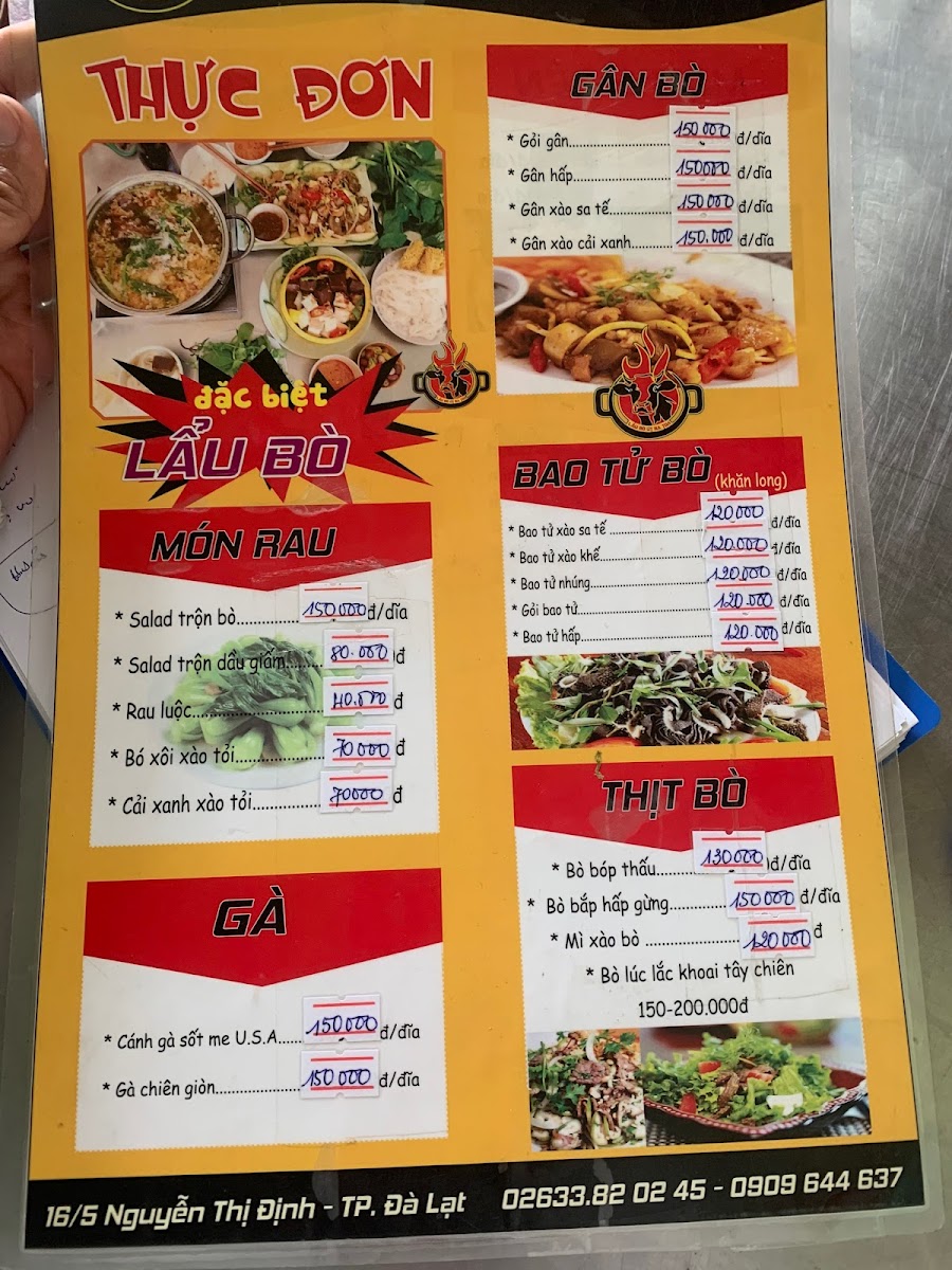 If you’re in Đà Lạt and craving something hearty and flavorful, the Lẩu Bò Út Ba Toa Menu has just what you need. Located at 16/5 Nguyễn Thị Định, Phường 5, Lâm Đồng, this spot is a local favorite for its delicious take on the classic Vietnamese hot pot. The menu features a variety of rich, aromatic broths paired with tender beef, fresh vegetables, and an array of dipping sauces that bring out the true essence of Vietnamese comfort food. Whether you're a regular or a first-timer, there’s something here to satisfy every craving. From the savory beef cuts to the perfect balance of herbs and spices, each dish is crafted to give you a unique and satisfying dining experience. If you find yourself in the area, this is definitely a spot you don’t want to miss!